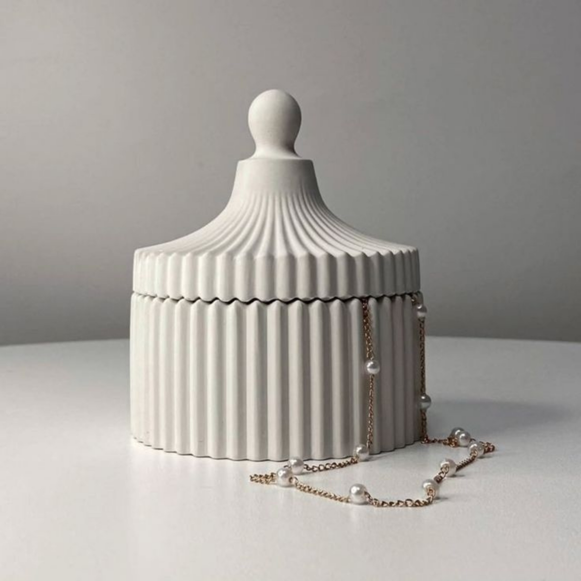 Elevate your organization game with this modern ribbed ceramic jewelry jar where form meets function. Designed with a fluted texture and a dome-shaped lid, this elegant container adds a touch of minimal luxury to any vanity, nightstand, or bathroom counter.